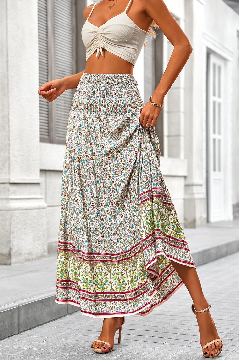- 🦄UNIQUE DESIGN:This Floral Maxi Skirt Goes With Elastic Waist, Flared Pattern, Unique And Exquisite Ethnic Print, Ruffle Pleated Hem. Beautiful And Dressy Printed Details Are The Most Distinctive Highlight Of This A Line Skirt. With Comfy And Breezy Fabric, This Wrap Skirt Insure You a Cool Summer. Swing Tiered Skirt, A Staple In Every Women’s Wardrobe.