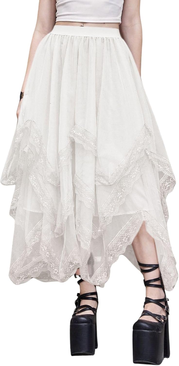 - High Waist, Contrast Lace, A Line, High Low Asymmetrical, Party Tutu Skirt