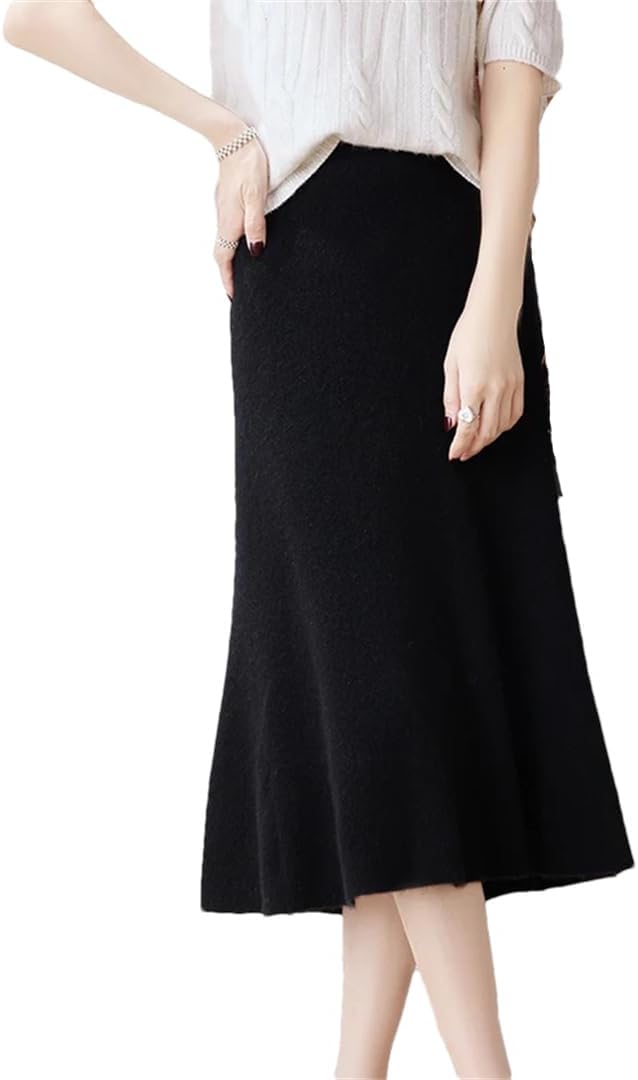Women Autumn and Winter Merino Wool Sweater Knitted Mid-Length Skirt A-Line Half Knee Skirt