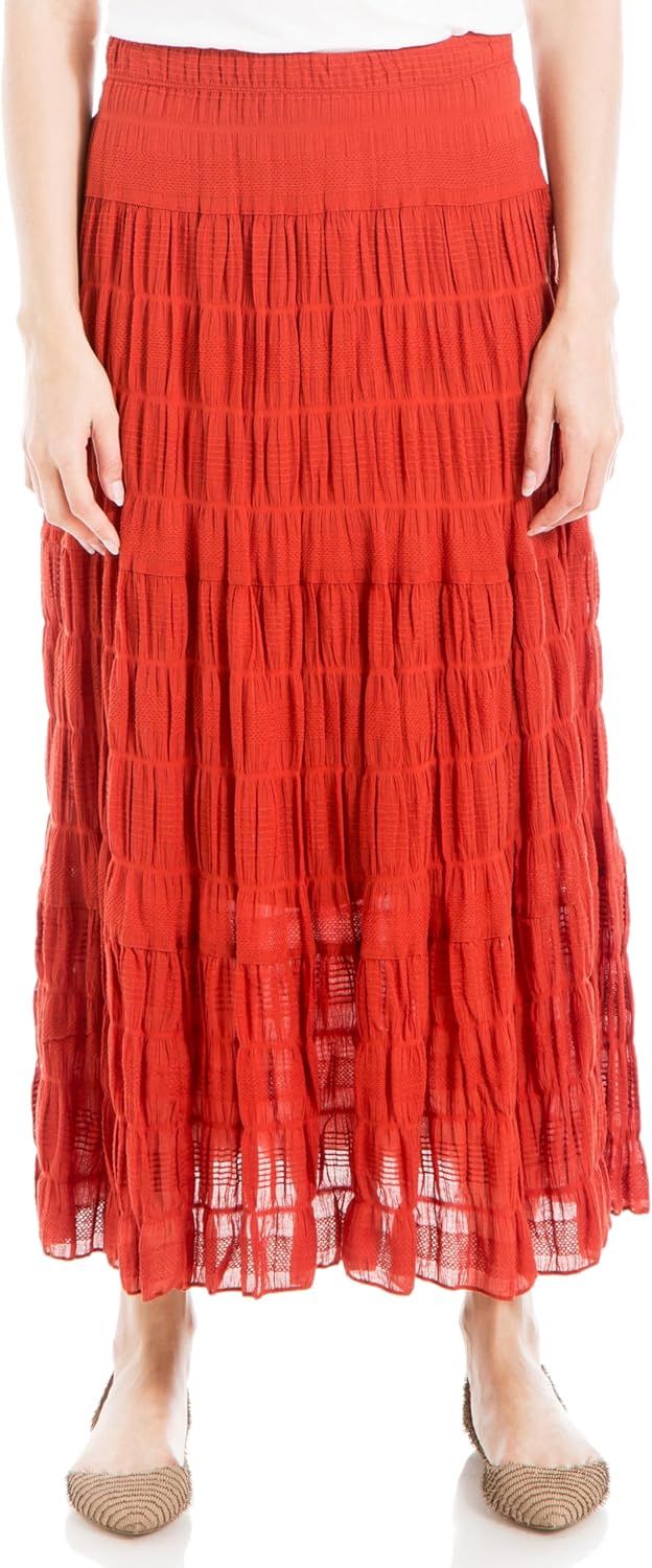 - QUALITY MATERIAL: ‘s flowy boho textured cotton long maxi skirt is designed to be breathable, lightweight, and comfortable. Available in a variety of sizes and colors, this particular skirt is women’s size small, color terracotta.