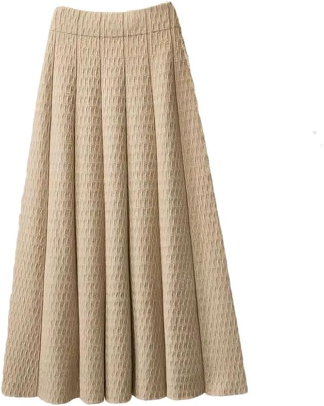 Women Solid Color Mid Length Knitted Half Length Skirt Winter High Waist Slim Knit Pleated Skirt