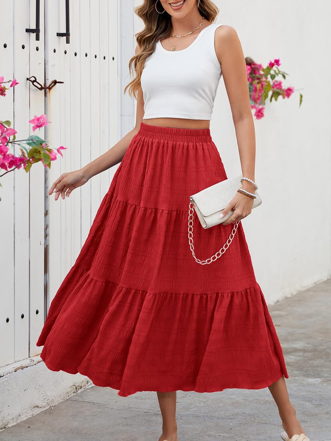 - Match: The tiered skirts for women can be paired with a variety of tops, tank tops, t-shirts, blouse, sweater top, jackets, sandals, heels, flip-flops……which makes it super versatile. The black skirt that would work for casual wear or work