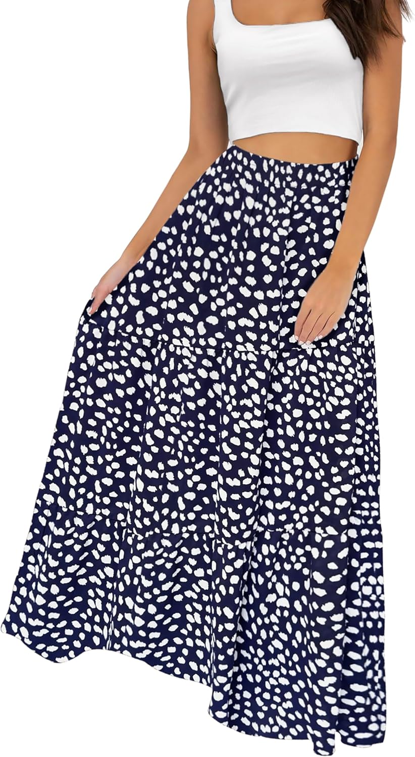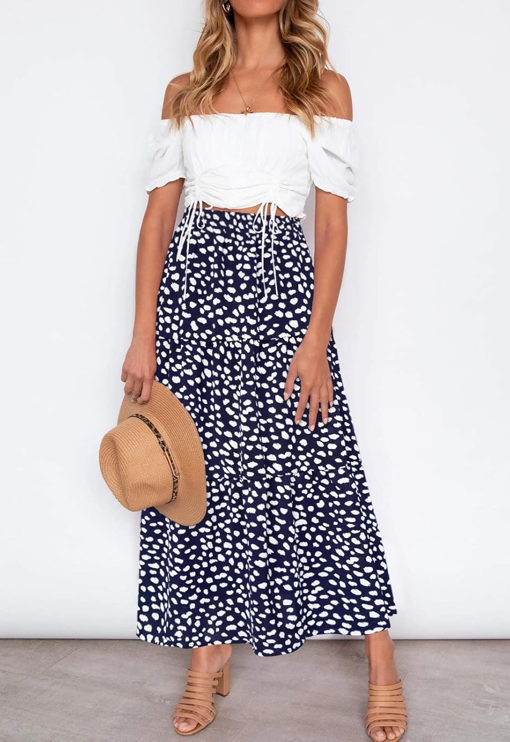 • Tiered Maxi Skirt: Womens tiered skirt comes with elastic waistband and pleats, flows and drapes nicely, flattering over your hips and belly. Causal relaxed fit long flowy skirt will suit for all type of body shaped, so easy to dress up or down with a blouse and wedges or a tank top and flips.